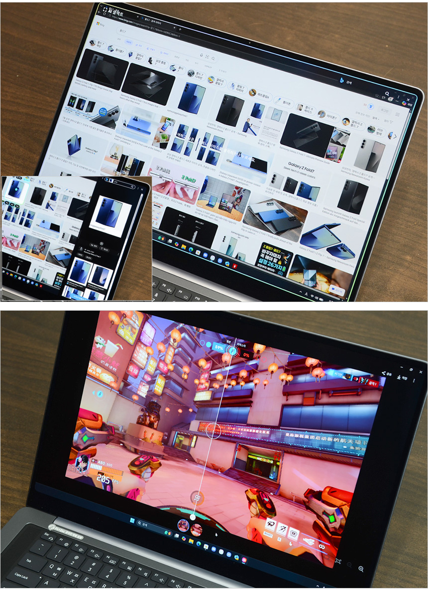 뛰어난 화질도 장점이라 할 수 있다. 16형 대화면의 고해상도 Dynamic AMOLED 2X 디스플레이를 탑재해 진한 색감을 즐길 수 있었으며 120Hz 주사율을 지원하고 블루라이트 감소 기술, 저반사 패널도 적용되어 장시간 사용시에도 눈이 상당히 편했다. 뿐만 아니라 터치를 지원해 편하게 노트북을 조작할 수 있었으며 HDR 1000nits로 밝기가 높아져 더 사실감 넘치는 영상을 즐길 수 있었다.