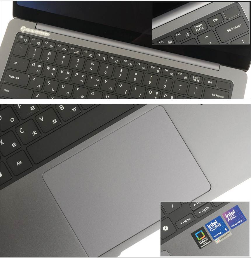 사용편의성을 높이기 위해 키보드 1열에 다양한 펑션키를 제공하며 우측에는 지문인식 센서를 내장한 전원 버튼이 설치된 것을 확인할 수 있었다. (보안성을 높이기 위해 스마트폰에서 적용되던 삼성 녹스 보안 솔루션도 적용되어 있다.) 별도로 분리된 보안칩을 통해 해킹등으로부터 데이터를 안전하게 보관할 수 있다.