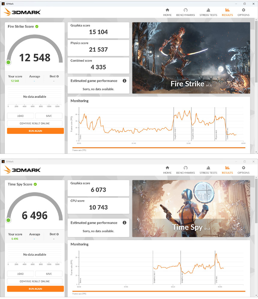 3D 성능을 확인하고 있는 모습으로 전작의 아크 내장그래픽과 확연하게 비교되는 높은 스코어를 보여주었다. 구형 게이밍 노트북 수준의 3D 성능을 지원하는 모델로 Xess 업스케일링 기술만 활용하면 최신 게임도 원활하게 즐길 수 있다.
