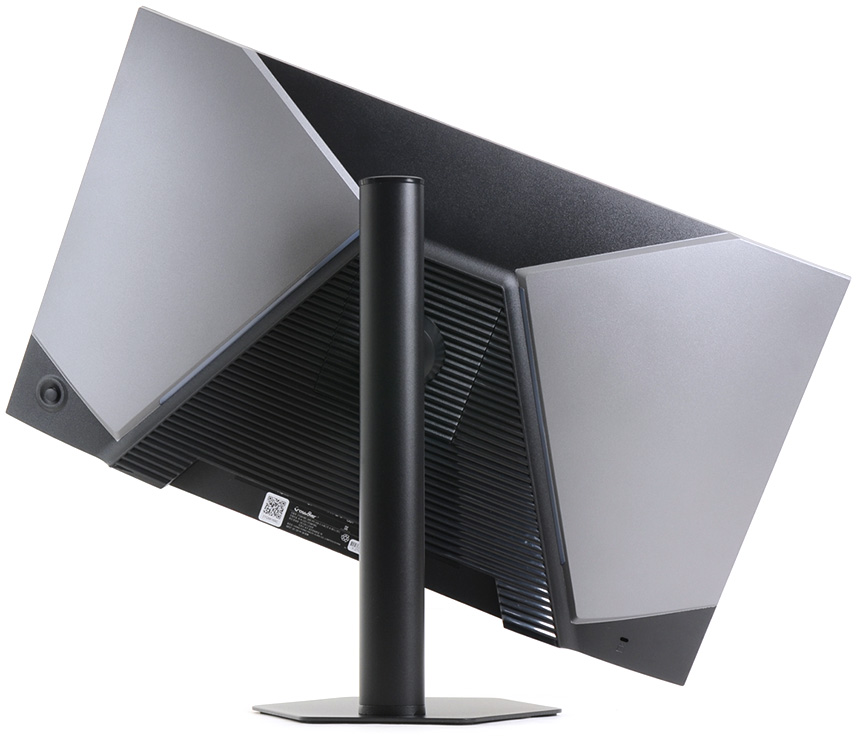 후면 중앙에는 100 x 100mm 의 베사홀이 설치되어 있어 벽에 걸거난 ARM 에 장착해 사용할 수 있고 (스탠드는 툴리스 방식을 지원해 손쉽게 탈부착 할 수 있다.) 하단에는 HDMI와 DP, C타입 단자를 지원해 PC나 노트북은 물론, 게임콘솔과 OTT 플레이어, 스마트폰 등 다양한 디바이스와 연결해 사용할 수 있다. 또한 헤드셋이나 이어폰 연결을 위한 오디오 Out 단자와 전원 단자를 지원한다.