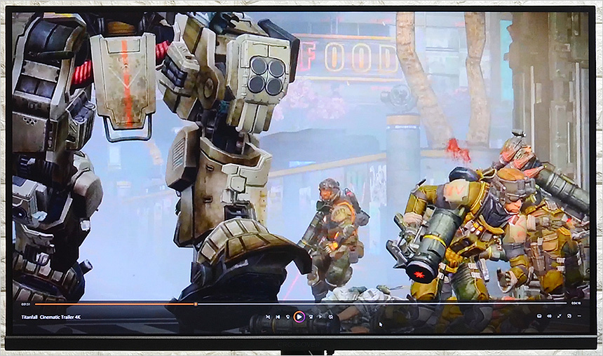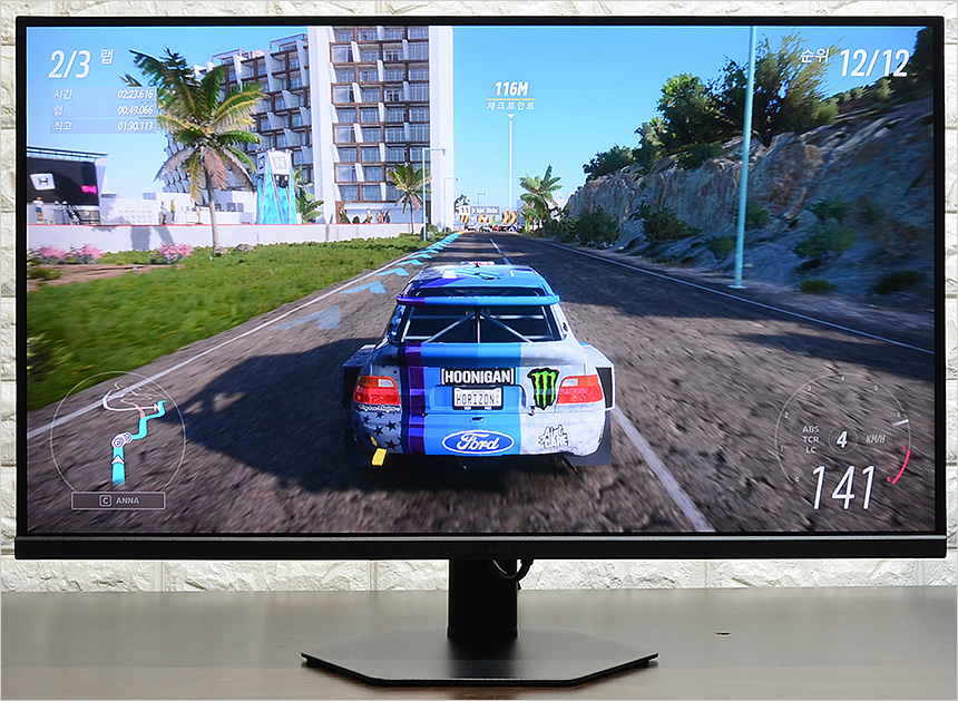화질 테스트를 진행하고 있는 모습으로 IPS 패널 특유의 선명한 컬러 구현이 매력적이었으며 자연스러움 보다는 진한 색감으로 셋팅되어 눈이 확 들어오는 영상을 즐길 수 있었다. QHD 해상도 모델답게 FHD 모니터와는 확연히 다른 디테일을 경험할 수 있었으며 높은 밝기 특유의 화사함도 인상적이었다. 또한 대부분의 IPS 모니터와 달리 2,000 : 1 의 높은 고정 명암비를 지원해 그레이스케일 차트를 확연히 구분할 수 있었으며 HDR을 지원해 사실적인 영상을 즐길 수 있다.