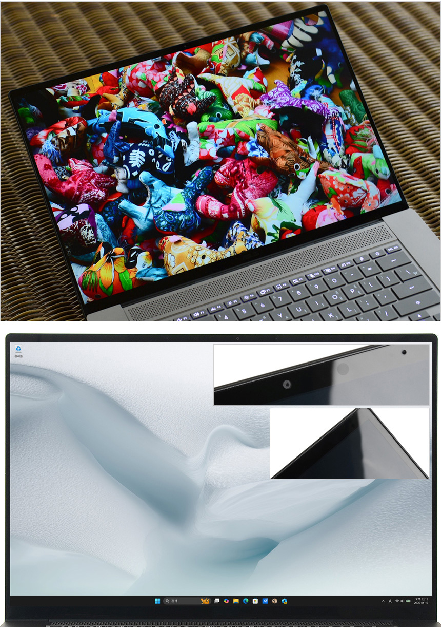 최고급형 모델에 걸맞게 디스플레이를 최상급으로 적용한 것을 확인할 수 있었다. 3K 고해상도의 OLED 패널을 적용해 압도적인 선명도를 보여 주었으며 16:10 비율로 작업 편의성을 높일 수 있을 뿐만 아니라 터치를 지원해 마우스를 사용하기 힘든 환경에서도 편하게 노트북을 조작할 수 있다. 여기에 120Hz 의 높은 주사율 지원으로 물 흐르듯 자연스러운 영상을 보여주었다.