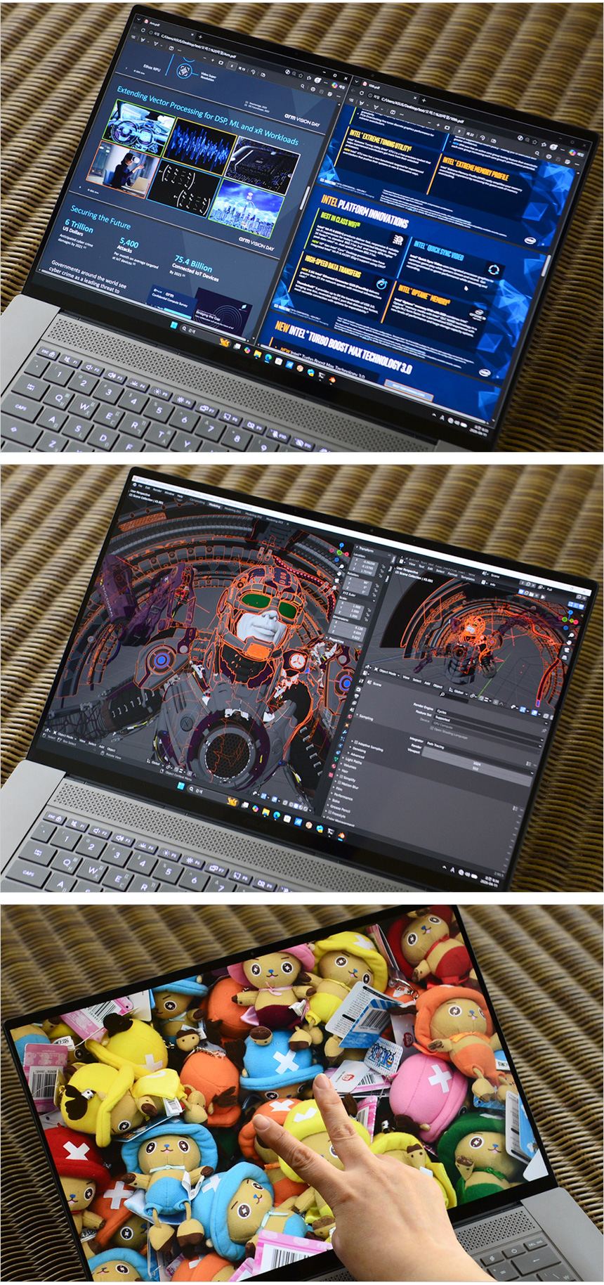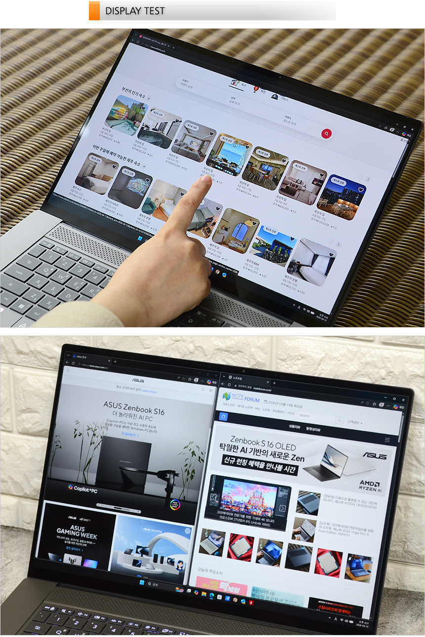 터치인식 테스트를 진행하고 있는 최고급형 노트북 답게 자연스럽게 동작하는 것을 확인할 수 있었다. 멀티터치도 지원해 터치에 특화된 S/W도 편하게 사용할 수 있을 것이다. (동영상을 참조하기 바란다.) 이 제품은 16형 크기에 3K 해상도를 지원해 2개 이상의 창은 여유롭게 띄어두고 사용할 수 있다. 특히 세로가 긴 16:10 비율 지원으로 글을 읽는 것이 상당히 편했다.