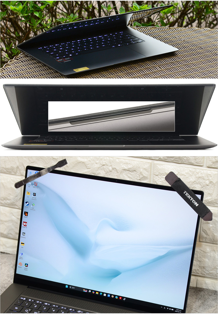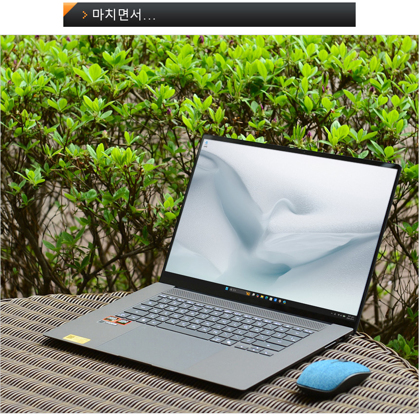 16형 대화면 디스플레이를 탑재했음에도 무게가 1.5Kg에 불과하며 상당히 날렵해 편하게 들고다니며 테스트를 할 수 있었다. 24시간 이상의 긴 배터리 사용시간을 보여 주었을 뿐만 아니라 PD충전도 지원해 배터리 걱정없이 사용할 수 있으며 미국 국방성 군사 규격 MIL-STD-810H 밀리터리 등급 표준을 충족하는 높은 내구성으로 안심하고 외부에서 아용할 수 있다.