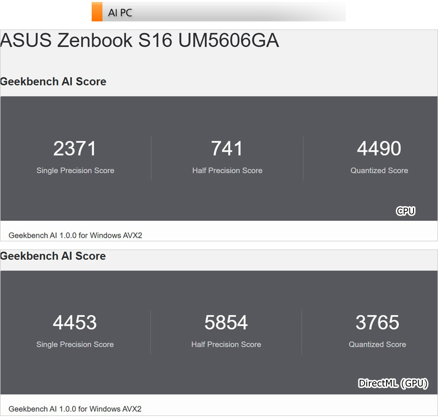 AI 전용 벤치마크 툴을 이용해 AI 성능 테스트를 진행하고 있는 모습으로 NPU가 탑재된 모델답게 높은 스코어를 보여주었다.