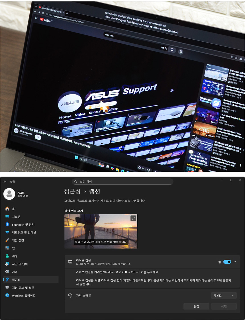 4K 동영상과 MP3 파일을 이용해 멀티미디어 테스트를 진행하고 있는 모습으로 16형 대화면 디스플레이에 슬림베젤 적용으로 시원시원한 영상을 즐길 수 있으며 OLED 특유의 선명함이 더해져 높은 몰입감을 경험할 수 있었다. 특히 일반 노트북을 압도하는 사운드까지 더해진 노트북으로 동영상 감상용으로 유용하게 활용할 수 있을 것이다. (돌비 애트모스 기술이 적용된 노트북 답게 중고음 뿐만 아니라 저음 재생력도 뛰어났으며 노이즈 없는 깔끔한 사운드를 들려주었다.)