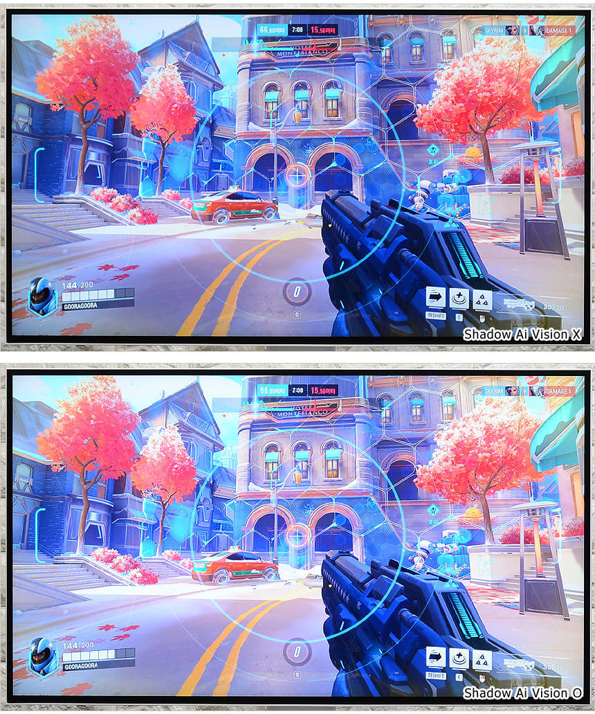 즐기는 컨텐츠에 맞게 최상의 영상을 제공하는 AI 비전 기술이 제공된다. 상단의 사진은 기본 상태와 비교한 모습으로 더 밝고 화사한 영상으로 변신한 것을 확인할 수 있다.