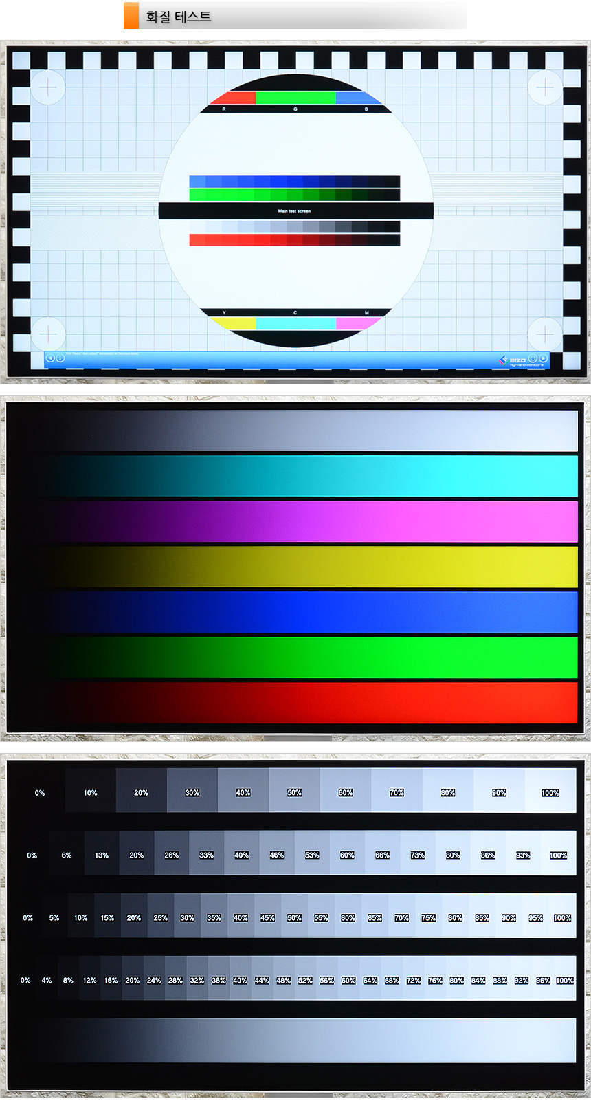 화질 테스트를 진행하고 있는 모습으로 나노 IPS 블랙패널 특유의 진한 색감이 인상적이었으며 10억 7천만 컬러를 지원해 색의 변화가 자연스러운 것을 확인할 수 있었다. 350cd/㎡로 밝기도 높은 편이며 색 재현력도 상당히 뛰어나 작업용 모니터로도 충분히 활용할 수 있다.