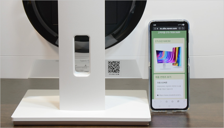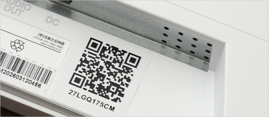 모니터 후면에 있는 QR코드를 스마트폰 으로 스캔하면 모니터 제조일과 모니터 관련정보를 확인할 수 있다.