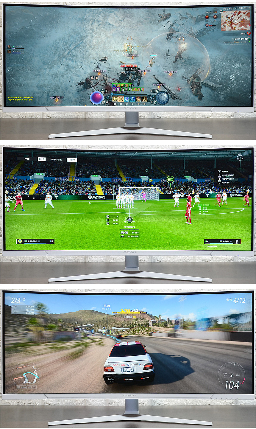 디아블로 4, 피파온라인, 포르자 호라이즌 5를 이용해 테스트를 진행하고 있는 모습으로 36형 대화면에 울트라 WQHD 해상도 지원으로 게임 속 상황을 한눈에 파악할 수 있었으며 1ms 응답속도 지원으로 잔상없는 부드러운 움직임을 경험할 수 있었다. 또한 IPS 에 버금가는 높은 선명도를 보여주었으며 (뿌연 느낌이 강한 일부 VA패널과는 완전히 다른 색감을 보여주었다.) 울트라 와이드 디스플레이가 탑재된 모델답게 레이싱이나 스포츠 게임에서 한차원 높은 몰입감을 선사했다. (스포츠나 레이싱 게임을 즐긴다면 일반 모니터와는 완전히 다른 느낌을 받을 수 있을 것이다.)