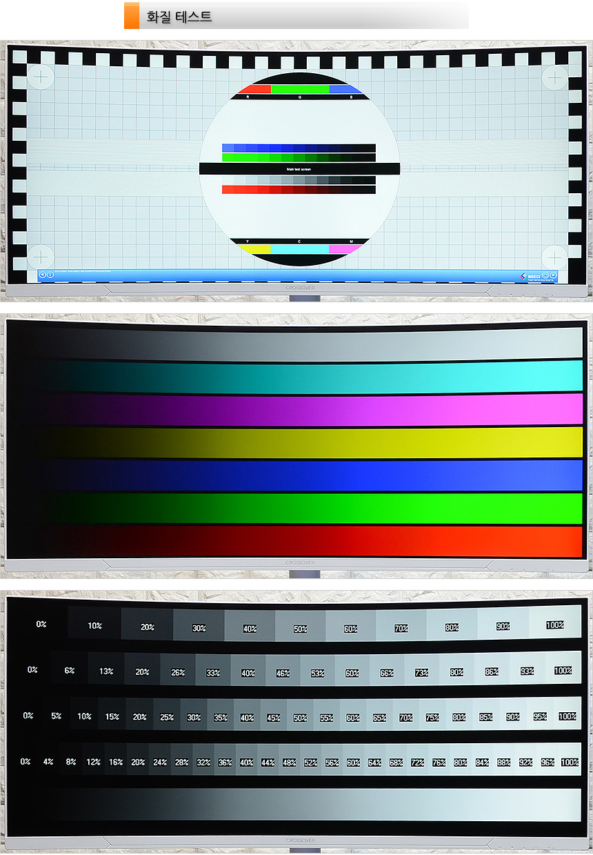 스마트폰의 카메라 기능을 이용하면 모니터의 플리커 현상을 확인할 수 있다. (스마트폰 전문가 모드 설정후 셔터스피드 1/300 이상으로 셋팅) 테스트용 모니터는 플리커 현상이 발생하는데 반해 크로스오버 34QW290GM 은 깜빡임 없이 부드러운 영상을 재생해 주었다. (동영상에서 자세히 확인하기 바란다.)