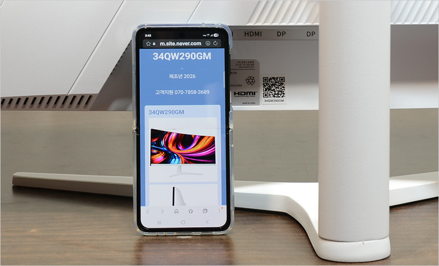 모니터 후면에 부착된 QR코드를 스마트폰 으로 스캔하면 모니터 제조일과 모니터 관련정보를 확인할 수 있다.