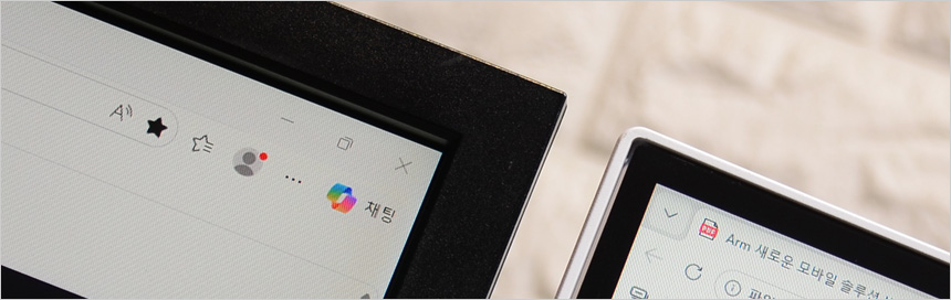 두 대의 모니터를 셋팅한 김에 베젤 두께를 확인해 보았는데 구형 모니터와 큰 차이를 보여주었다. 슬림 베젤을 적용한 모델로 높은 몰입감을 경험할 수 있을 것이다.