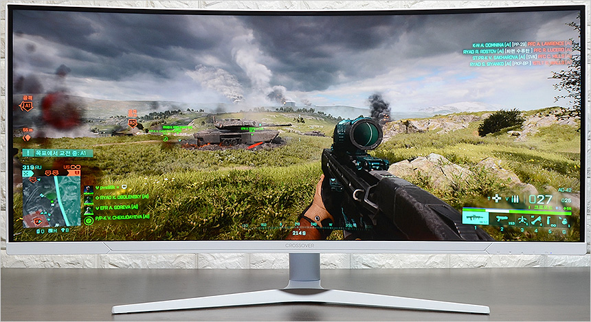 200Hz 주사율과 1ms 응답속도를 지원하는 게이밍 모니터로 FPS 게임 오버워치 2 와 배틀필드 2042를 먼저 실행해 보았다. (참고로 두게임 모두 21:9 비율을 지원해 풀화면으로 게임을 즐길 수 있었다.) 60Hz 일반 모니터는 물론 144Hz 주사율 지원 보급형 게이밍 모니터와 움직임에서 분명한 차이를 느낄 수 있었으며 높은 밝기를 지원해 어두운 실내에서도 확연하게 캐릭터를 구분할 수 있었다. 또한 조준선을 적용할 수 있어 사격 정확성을 높일 수 있었다. (참고로 일반 조준선 뿐만 아니라 배경에 따라 조준선의 컬러가 달리해 시인성을 높여주는 Ai 조준선도 지원한다.)