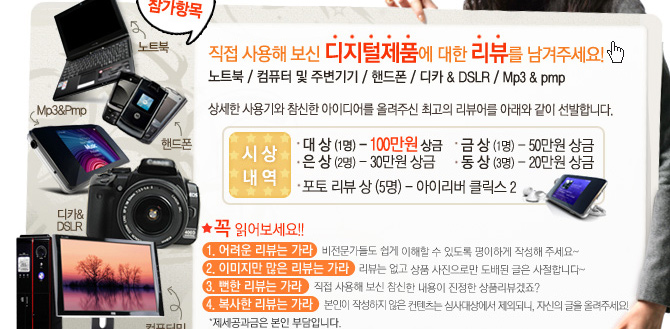 - 포토 리뷰상 / 5명 - 아이리버 클릭스