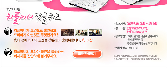 - 응모기간 : 2008년 3월 26일(수) ~ 4월 9일(수)