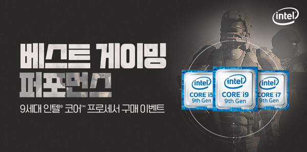 행사 제품인 9세대 인텔 코어 프로세서는 자유도 높은 게임, FPS, MMORPG 등 장르를 가리지 않는 강력한 게이밍 성능을 갖추고 있다.