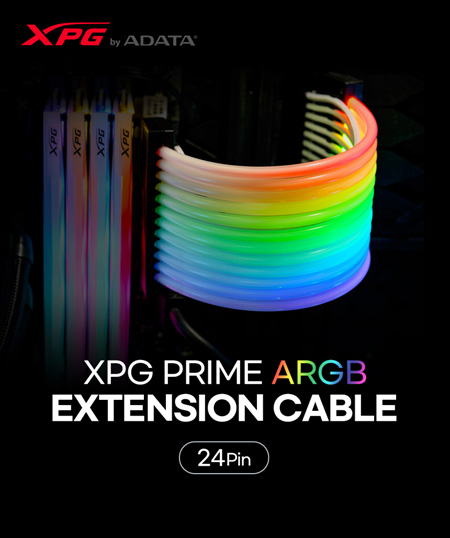 ADATA XPG PRIME ARGB EXTENSION CABLE은 연장선 형태의 파워서플라이 슬리빙 케이블이다. 일반적인 케이블과 달리 LED 확산 튜브를 덧씌운 점이 특징. RGB LED를 통한 감성적인 PC 튜닝이 가능하다.