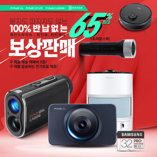 주요 제품별 보상판매 가격은 ▶ 파인드라이브 AI 2 32GB, 19만 9천원→12만 9천원 ▶ 파인뷰 X7 32GB, 24만 9천원→14만 9천 9백원 ▶ 파인캐디 UPL100 레이저, 42만 9천원→16만 9천원 ▶ 에코백스 디봇 오즈모 950, 54만 9천원→36만 9천원 ▶ 에코백스 애트모봇 애바, 89만원→57만 9천원 등이다. 이외에도 블랙박스 제품의 경우 출장 장착 서비스와 외장 GPS 등을 무상 지원한다.