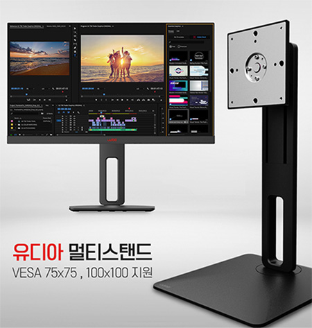 새로 출시한 멀티스탠드 MS-2401, MS-2701는 각각 24형, 27형 유디아 제품에 특화된 제품으로 일반 모니터 스탠드에서 지원하는 틸트(앞뒤 각도 조절)은 기본으로 지원할 뿐만 아니라, 엘리베이션(높낮이 조절), 스위블(좌우 각도 조절), 피벗(화면 회전) 등의 다양한 조절 기능을 제공한다.