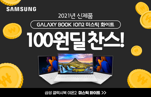 유니씨앤씨는 2021년형 신제품 삼성 갤럭시북 이온2 미스틱 화이트 모델을 대상으로 “갤럭시북 100원딜” 이벤트를 2020년 12월 17일부터 2020년 12월 20일까지 진행한다.