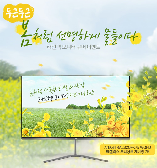 래안텍은 3월 봄을 맞아 자사 인기 모니터 18종을 대상으로 백화점 상품권을 증정하는 ‘래안텍 모니터 구매 이벤트 '두근두근 봄처럼 선명하게 물들이다' 프로모션을 진행한다.