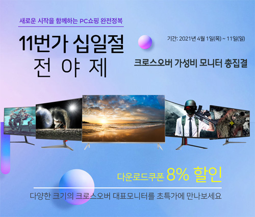 크로스오버는 인기 게이밍, 21:9 및 대화면 4K 모니터 18종을 대상으로 11번가 십일절 전야제를 진행한다.