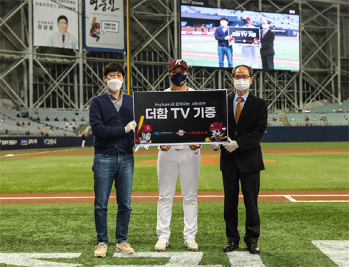 지난 7일 고척스카이돔에서 열린 키움히어로즈와 KIA타이거즈의 경기에 앞서 ‘더함 홈런존 TV 전달식’을 진행했다. 이 자리에서 더함은 지난 4일 2021시즌 고척 스카이돔 첫 홈런을 때린 키움히어로즈 김수환 선수와 함께 더함 안드로이드TV를 구로노인종합복지관에 전달하였다.