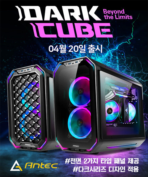 DARK CUBE 제품은 이전 RAZER사와 합작하여 출시되었던 ITX 알루미늄 케이스 CUBE 모델의 업그레이드 제품으로, 특히 디자인과 확장성에서 재미와 개선을 하였다. 가장 큰 특징으로는 전면에 강화유리와 다이아 그릴 메쉬 타입의 새로운 전면 패널 2가지를 제공하여 유저 성향에 따른 튜닝과 발열에 걸맞는 디자인 요소를 강화하였다. 또한, 전면 ARGB 라이팅 탑재 및 알루미늄 바디와 함께 상단에 그래픽카드 쇼케이스와 리버스 설계 그리고 강화유리 패널을 양쪽 모두 적용하여 멋스러운 연출이 가능하다.