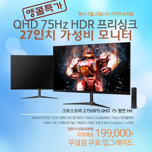 지마켓 에서 5월 26일(수) 단 하룻동안 진행되는이번 행사에서 2750IPS 모니터는 일반가 209,000원에서 행사가 199,000원에 판매된다. 행사는 선착순 100대 한정으로 진행되며, 구입시무결점 모델로 무료 업그레이드 해서 발송된다. 고객의 부담을 덜기 위해 배송비는 무료다.