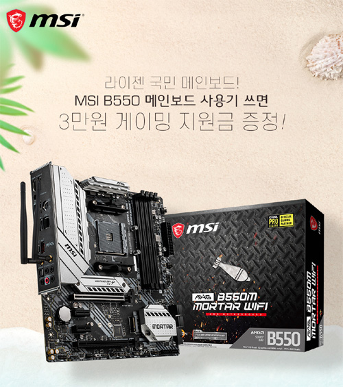 MSI는 7월 중 MSI B550 메인보드 구매 고객을 대상으로 최대 5만원의 혜택을 제공하는 MSI B550 메인보드 7월 이벤트를 진행한다.