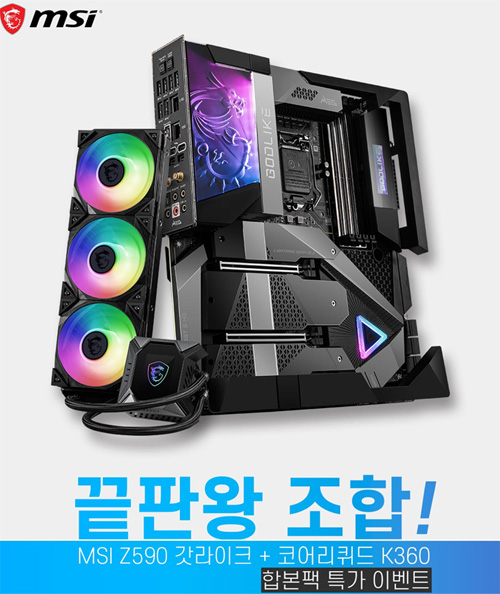 MSI는 게이머 및 크리에이터를 위해 ‘끝판왕 메인보드’ MSI Z590 갓라이크와 코어리퀴드 K360으로 구성된 특별 패키지를 이벤트 기간 중 특가 판매한다.