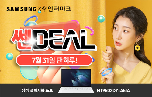 유니씨앤씨는 AMOLED 디스플레이 탑재와 초슬림 초경량 디자인으로 뛰어난 휴대성을 자랑하는 삼성 갤럭시북 프로 NT950XDY-A51A 모델을 대상으로 최대 23만원 추가 할인과 함께 푸짐한 혜택이 주어지는 ‘쎈딜’ 프로모션을 2021년 7월 31일 단 하루 동안 인터파크를 통하여 단독 진행한다.