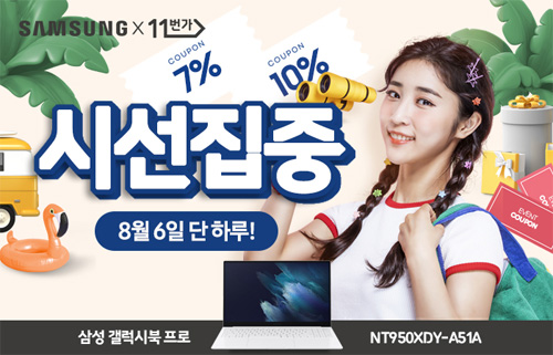 유니씨앤씨는 15.6인치 AMOLED 디스플레이 탑재와 초슬림 초경량 디자인으로 뛰어난 휴대성을 자랑하는 삼성 갤럭시북 프로 NT950XDY-A51A 모델을 대상으로 최대 31만원 추가 할인과 함께 푸짐한 사은품이 주어지는 ‘시선집중’ 프로모션을 2021년 8월 6일 단 하루 동안 11번가를 통하여 단독 진행한다.