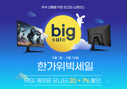 MSI는 국내 유명 오픈 마켓, 옥션-G마켓에서 열리는 ‘한가위 빅세일’ 기간 동안 게이밍 모니터를 할인 판매한다.