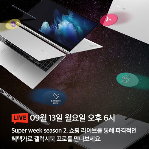 네이버 쇼핑을 통해 진행되었던 ‘FALL IN GALAXY 삼성 슈퍼위크 시즌1’에 이어 다시 한번 삼성전자와 함께하는 삼성 슈퍼위크 시즌2로 진행되는 쇼핑라이브 방송은 갤럭시북 프로 제품의 사양과 활용법등을 설명하고 소비자들의 궁금증을 해소하여 주는 소통방식으로 진행이 된다.