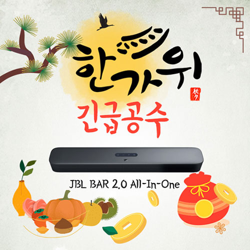 이번 행사는 40% 한가위 특별 할인과 즉시 할인, 카드 할인을 제공하며, 최대 6개월 무이자 할부 혜택이 적용되어 JBL BAR 2.0 AIO 사운드바를 특별한 혜택가에 구매할 수 있다.