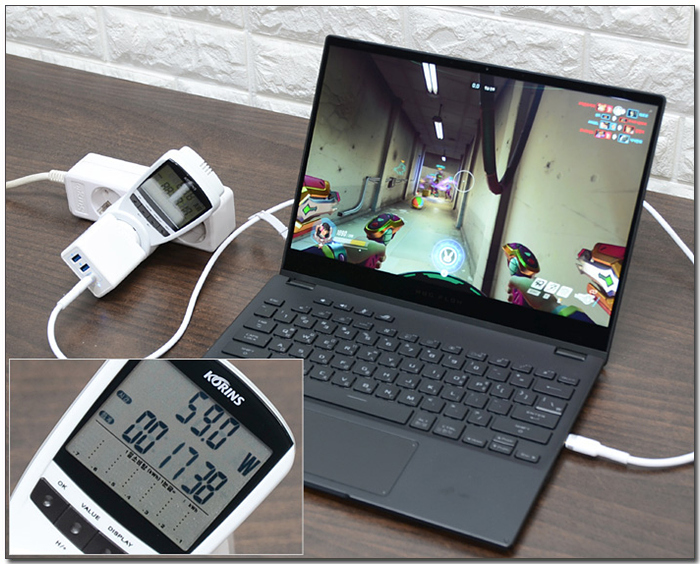 @ 65W PD충전을 지원하는 일반 노트북의 경우 게임 실행시 30~45W 정도로 작동한다. 극한의 환경을 만들어 테스트를 진행했다는 것을 알아두기 바란다.