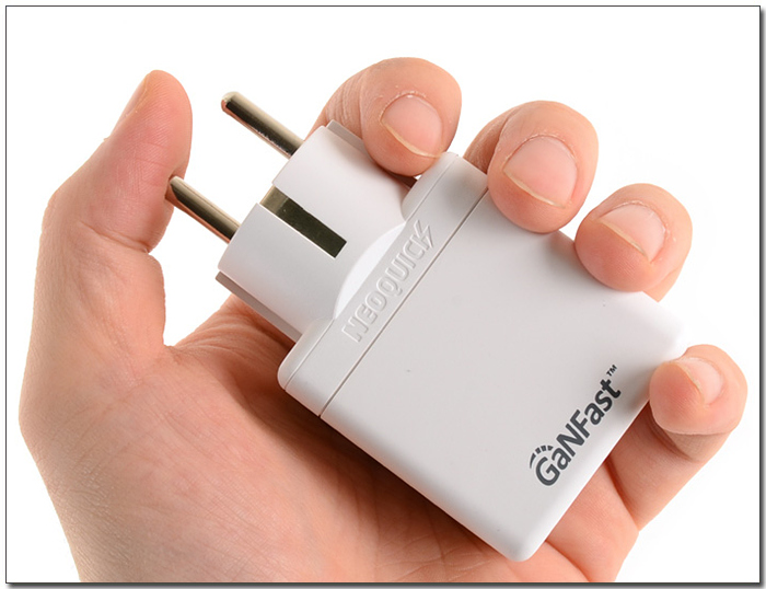 이 제품의 가장 큰 특징은 Navitas 질화갈륨 고속충전 솔루션 적용으라 할 수 있다. 질화갈륨 충전기의 경우 실리콘 충전기 대비 발열이 적어 부품을 가까이 배치할 수 있으며 기능 및 안전을 유지하면서도 충전기 크기를 줄일 수 있다. 또한 전자이동 속도가 빨라 스위치 주파수를 올릴 수 있으며 고출력, 고효율로 전력을 40% 이상 줄인다.