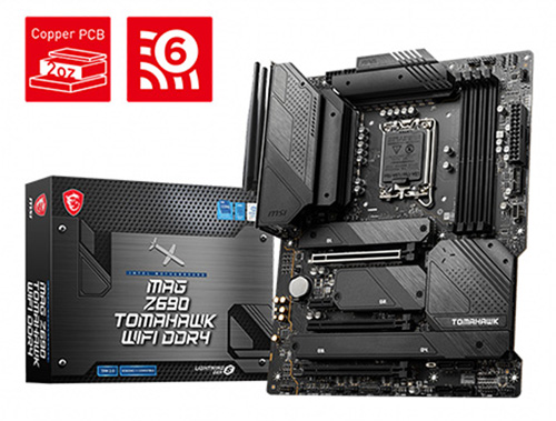 Z690 토마호크 WIFI DDR4는 총 18페이즈 프리미엄 전원부 및 2개의 8핀 보조전원을 채택해 인텔 12세대 코어 프로세서의 높은 퍼포먼스를 유지한다. 또한 서버 등급의 6레이어 PCB에 2oz의 구리를 삽입해 높은 부하에도 안정적인 신호 전송 능력을 확보했다.