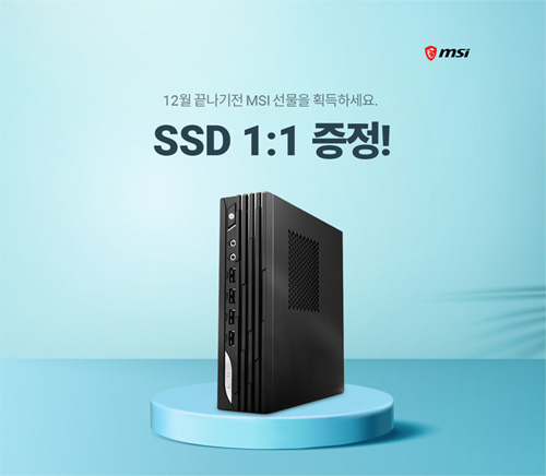 2021년 12월 8일부터 2021년 12월 31일까지 한정 수량으로 진행되는 이번 행사에서 MSI는, ‘MSI 미니 DP21’의 구매자 전원을 대상으로 SSD 240GB를 100% 증정한다. 이로써 MSI 미니 DP21베어본 모델을 구매할 경우 초기 구매 부담이 절감되며, 풀 시스템 모델을 구매할 경우 더 넓은 저장공간과 함께 사용할 수 있다.
