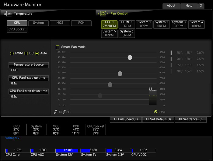 적용한 오버클럭 값은 프로파일로 저장해 추후 빠르게 적용할 수 있다. 또한 하드웨어 모니터 기능을 지원해 시스템 온도등의 변화를 한눈에 파악할 수 있다.