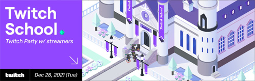 트위치가 12월 28일(화) 오후 8시 트위치 파트너십 파티 2021을 개최한다. 국내의 300여 명의 트위치 스트리머가 메타버스 플랫폼 게더타운(Gather.town)에 구현된 트위치 스쿨맵에 모여 온라인 파티를 즐긴다.