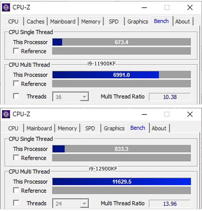 12세대 i5/i7 프로세서는 11세대 i7/i9 보다 높은 성능을 구현한다. (ex. i7-12700K 가 i9-11900K 보다 성능이 높다.) 쉽게 말해 급을 넘어서는 성능향상 이라 할 수 있다. CPU 성능에 따라 작업시간이 좌우되는 영상편집이나 3D 등의 작업에서 특히 유용하게 사용할 수 있다.
