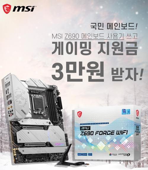 MSI는 ‘국민 메인보드’로 사랑받는 MSI Z690 메인보드를 구매 및 사용기 작성 고객을 대상으로 1월 한달간 최대 5만원의 혜택을 제공하는 이벤트를 진행한다.