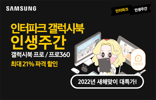 유니씨앤씨는 2022 새해를 맞아 AMOLED 디스플레이와 초슬림 초경량 디자인으로 뛰어난 휴대성을 자랑하는 삼성 갤럭시북 프로, 프로360 인기제품을 대상으로 최대 36만원 중복 할인 및 푸짐한 혜택이 증정되는 ‘갤럭시북 인생주간’ 이벤트를 2022년 1월 11일부터 1월 17일까지 인터파크를 통하여 단독 진행한다.