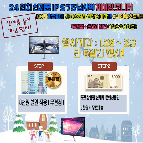 이번 행사동안 크로스오버의 포터블, 24, 27, 32형 등 다양한 모니터들이 저렴하게 판매된다. 행사기간은 1월 28일 금요일부터 2월 2일 수요일까지 진행되며 아래 링크를 통해 크로스오버의 다양한 제품들을 저렴한 가격에 만나볼 수 있다.
