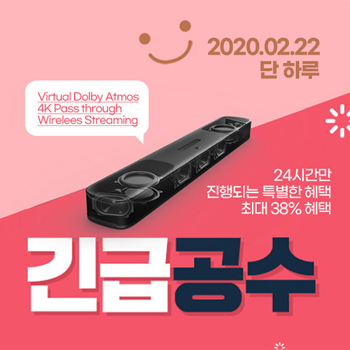 유니씨앤씨는 2022년 JBL BAR 5.0 Multibeam 사운드바 런칭을 맞이하여 드라마, 영화를 실감나게 감상할 수 있는 JBL BAR 5.0 Multibeam 사운드바를 대상으로 파격적인 혜택과 무료 설치 배송 혜택이 제공되는 ‘긴급공수’ 프로모션을 11번가를 통해 2022년 2월 22일 단 하룻동안 진행한다.