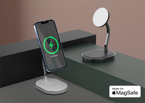 아트뮤의 신제품 'MC210'은 아이폰과 에어팟을 동시에 충전할 수 있는 애플 2in1 무선충전기 제품이다. 특히, 개발과 디자인에만 6개월이 넘게 걸린 제품으로 알려지면서 애플 유저들의 기대감을 높이고 있다. 가장 눈에 띄는 점은 역시 애플 공식 인증(MFM)을 통해 품질 신뢰도를 높인 점이다. 애플의 까다로운 기준을 충족시킨 제품인 만큼 품질에 민감한 애플 유저들의 눈높이를 충족시킬 수 있을 것으로 기대된다. 또한 최신 iPhone 12 모델부터 도입된 공식 맥세이프(Magsafe) 모듈을 적용해 아이폰을 간편하게 충전 및 탈부착할 수 있으며, 유튜브와 넷플릭스 등 영상 콘텐츠도 편리하게 감상할 수 있다.