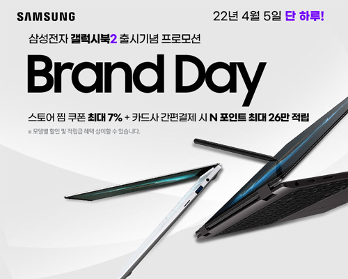 엔씨디지텍에서 4월 5일 하루 동안 신규 출시되는 갤럭시북2 프로 모델들을 대상으로 특별한 혜택들 받아 보실 수 있는 “삼성 갤럭시북 브랜드데이”특별 할인 행사를 진행한다.